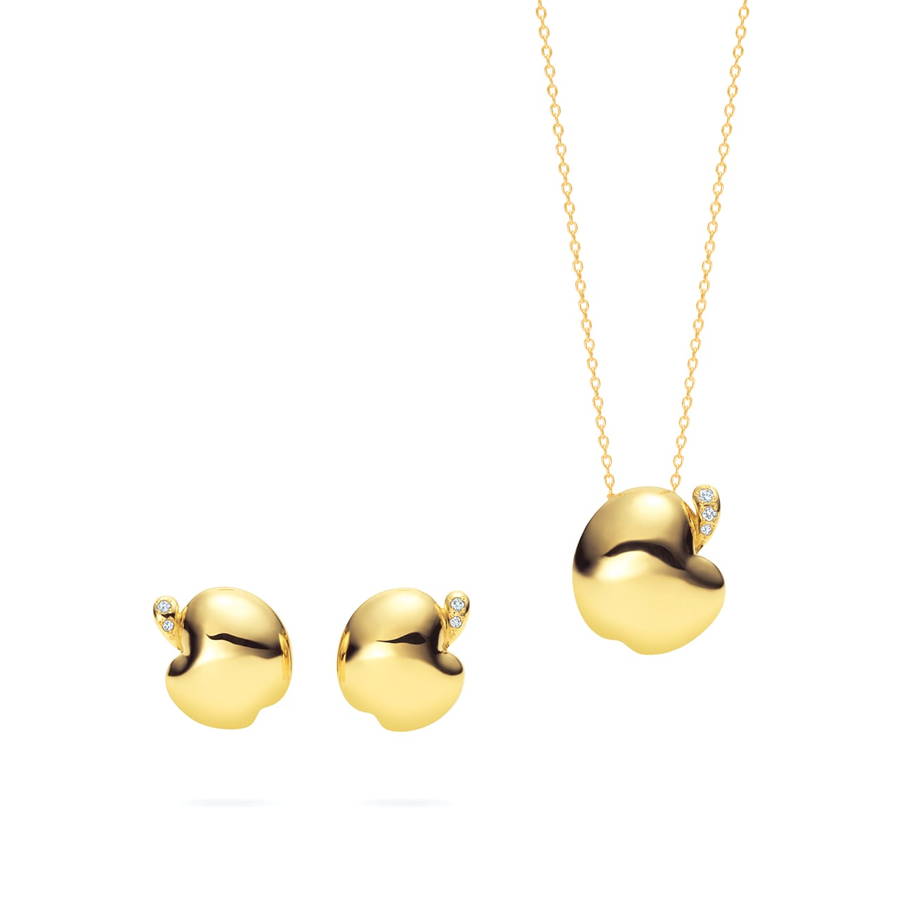 ぽってりとしたリンゴのフォルムを活かしたアイコニックなジュエリーは、洗練された可愛いらしさをプラスして大人の遊び心をくすぐります。