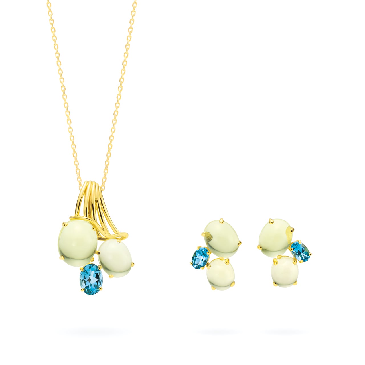 レモンクォーツが光を柔らかく反射して奥行きのあるツヤ感を生み出す、みずみずしさが魅力のカラーストーンジュエリーです。