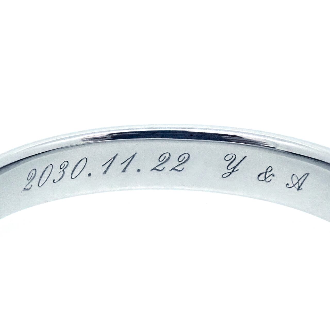 人気のハーフエタニティタイプ。リングに埋め込まれたダイヤモンドが着けている際に引っかからないよう工夫してあり、普段使いにもぴったり。どのウェディングリングとも重ね着けしやすいデザインです。